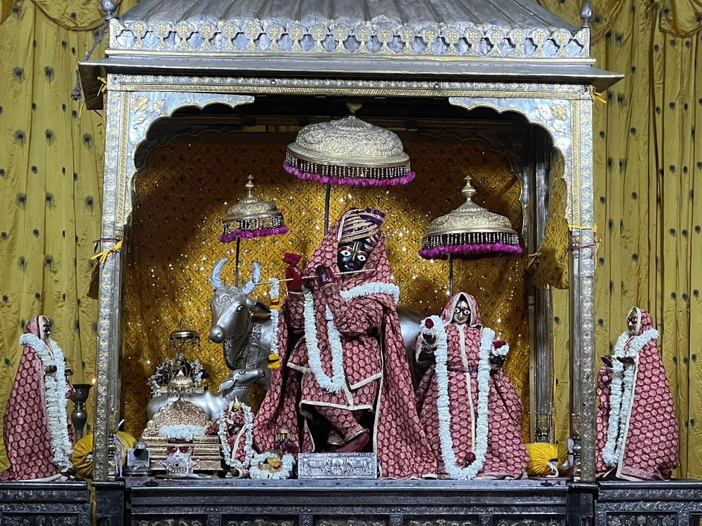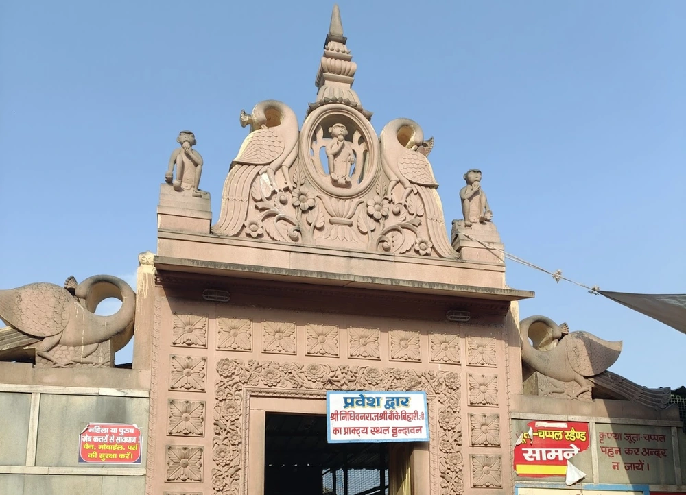 The temple is associated with the 16th-century saint Swami Haridas, who had divine visions of Lord Krishna here.